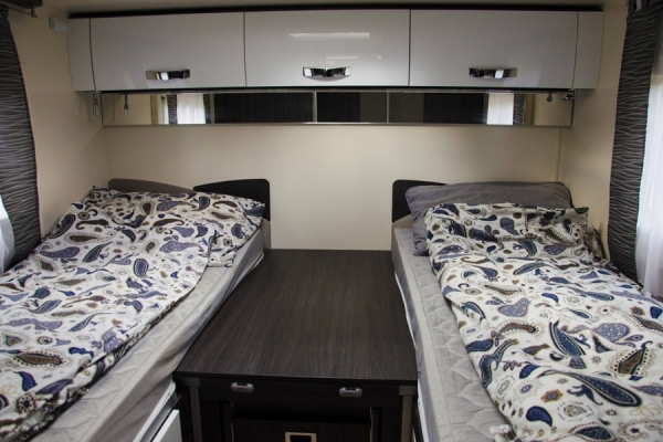 6 ležišč, maxi zakonska postelja zadaj, 5 homologiranih sedežev in ogromna ogrevana garaža. Najraje ga imajo družine in sveta željni popotniki. Moderno zasnovan, izjemno udoben, aerodinamičen, polintegriran zimski avtodom. El. postelja se spusti s stropa. Ločena WC in tuš ter z vrati ločena prostora v bivalnem delu. Bogato opremljen in z možnostjo izbire veliko dodatne kamp in športne opreme.