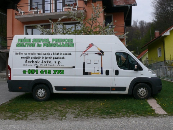 Hišni servis, Jožef šerbak, s. p. vam nudi prevoze s kombijem (Fiat Ducato Maxi/2009/dolžina: 4 m/1350 kg, 15m3 ) ter pomoč pri selitvah.